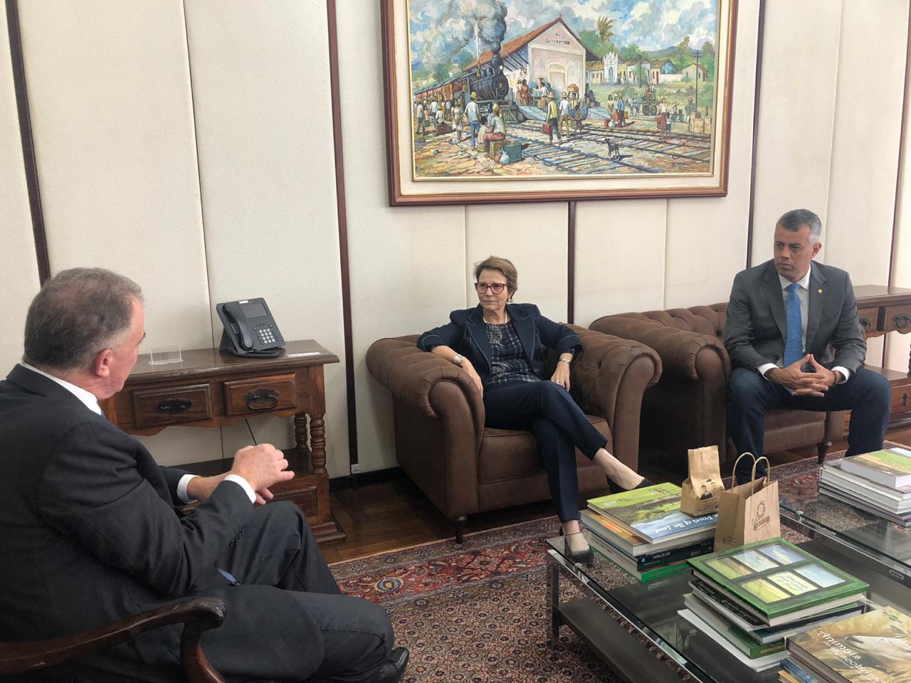 Casagrande e Evair também conversaram com a ministra sobre a questão dos armazéns do IBC, em Vitória, a situação das dívidas dos produtores rurais, produção de leite e a estocagem e distribuição de milho no Espírito Santo.