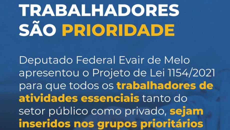 Evair de Melo trabalha para inserir os trabalhadores essenciais no grupo prioritário contra à COVID-19