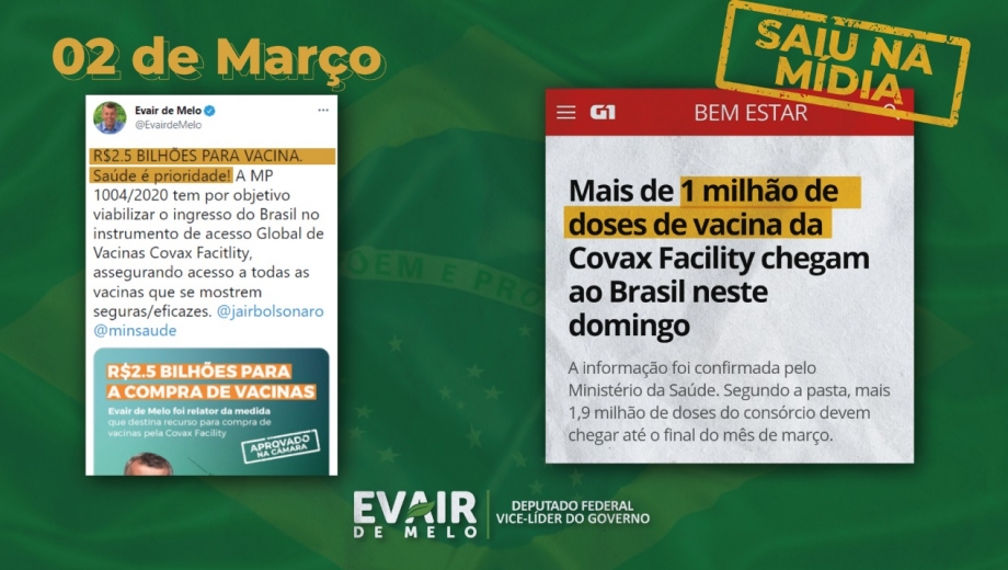 Mais de 9 milhões de doses das vacinas do pacote Covax Facility devem chegar ao Brasil entre março e abril