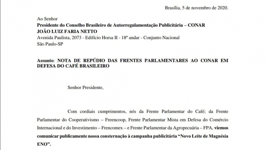 Frentes Parlamentares enviam nota de repúdio ao CONAR em protesto a nova propaganda da marca ENO