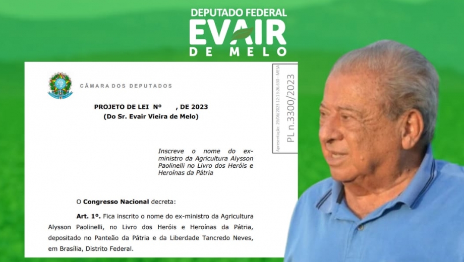 EVAIR DE MELO PROPÕE A INCLUSÃO DO NOME DE EX-MINISTRO ALYSSON PAOLINELLI EM LIVRO DOS HERÓIS E HEROÍNAS DA PÁTRIA