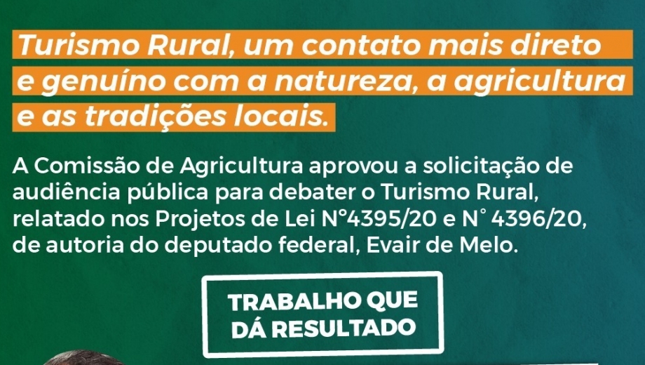 “O Turismo Rural é a grande janela de oportunidades para os brasileiros”, declara Evair de Melo em audiência pública