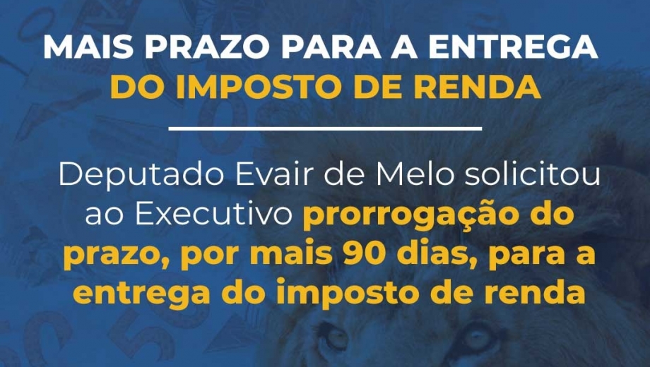 Deputado Evair de Melo solicitou ao Executivo prorrogação do prazo, por mais 90 dias, para a entrega do imposto de renda
