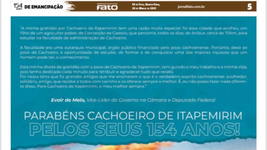 Cachoeiro de Itapemirim comemora 154 anos de emancipação