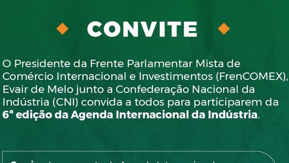 Deputado federal Evair de Melo participará do lançamento da Agenda Internacional de Indústrias 2021