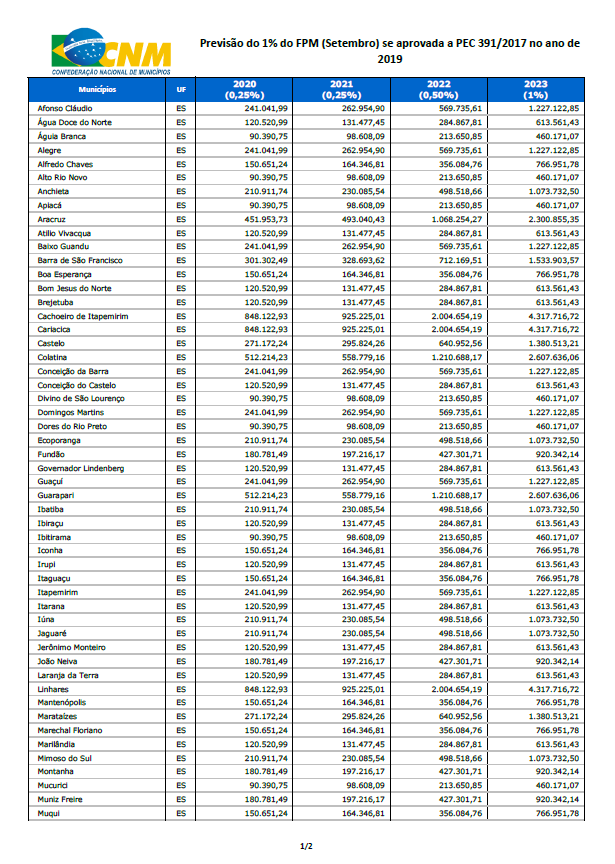 Tabela de Repasses PEC 391/2017 - Espírito Santo